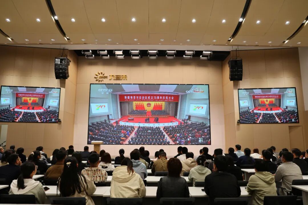 直播过程中,全体员工聚精会神,认真聆听大会内容,深刻感受党中央对新疆工作高度重视和对新疆各族干部群众的深切关怀。当看到新疆70年来,在党中央的坚强领导和亲切关怀下,社会稳定和谐、经济蓬勃发展、民族团结进步、人民生活幸福,大家脸上洋溢着对家乡发展的骄傲与对未来生活的憧憬,现场不时响起热烈掌声。
