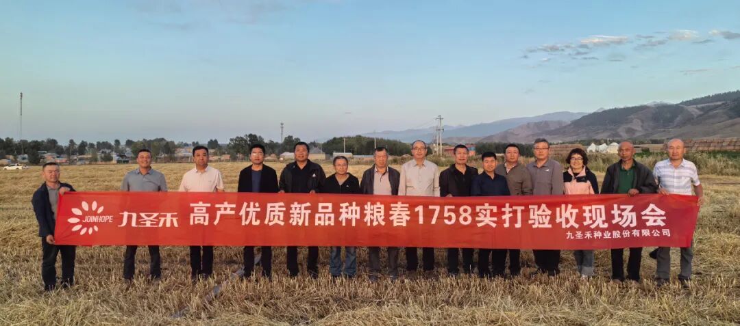 近日,由新疆维吾尔自治区农业科学院与九圣禾种业股份有限公司联合选育的春小麦品种“粮春1758”,在伊犁州昭苏县春小麦高产示范基地实收测产中喜获佳绩!自治区农业农村厅组织新疆农业大学、新疆农业科学院、石河子大学、新疆农垦科学院等单位相关专家组成专家组,根据农业农村部《全国粮食高产创建测产验收办法》要求,对昭苏县胡松图喀尔逊蒙古族乡喀塔尔托别村春小麦高产创建基地进行实收测产,测产的春小麦高产示范田总面积1080亩。百亩攻关田随机实收3.56亩,亩产达到850.21公斤,千亩创建田实收232.8亩,亩产达到721.02公斤,一举创下全国优质春小麦最高单产、全国春小麦千亩方高产纪录。