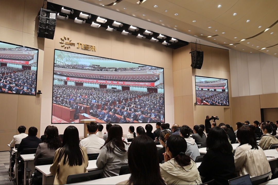 直播过程中,全体员工聚精会神,认真聆听大会内容,深刻感受党中央对新疆工作高度重视和对新疆各族干部群众的深切关怀。当看到新疆70年来,在党中央的坚强领导和亲切关怀下,社会稳定和谐、经济蓬勃发展、民族团结进步、人民生活幸福,大家脸上洋溢着对家乡发展的骄傲与对未来生活的憧憬,现场不时响起热烈掌声。