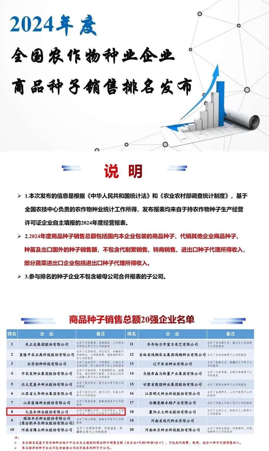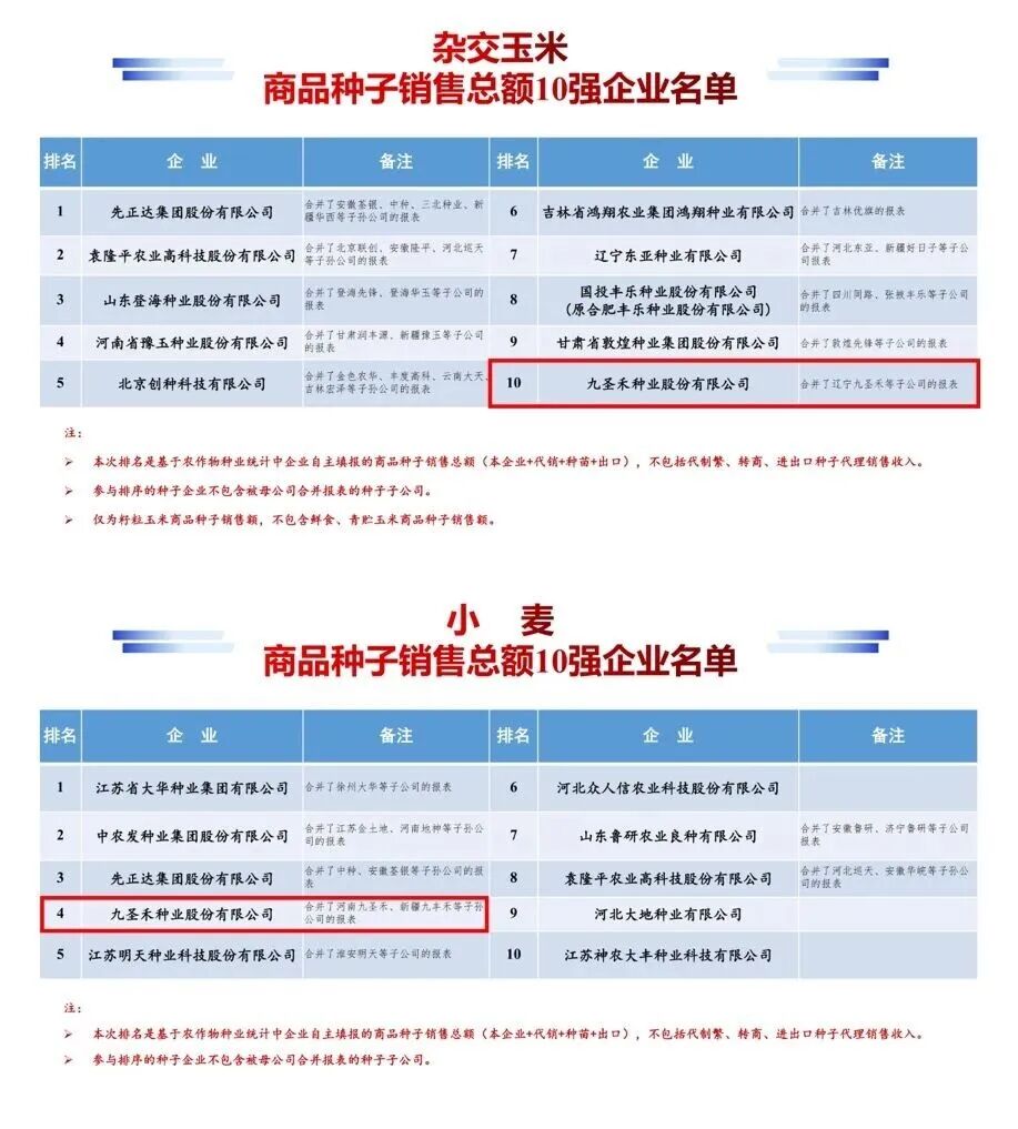 使命在肩丨九圣禾种业2024年度种子销售总额位列全国第八 多作物成绩亮眼