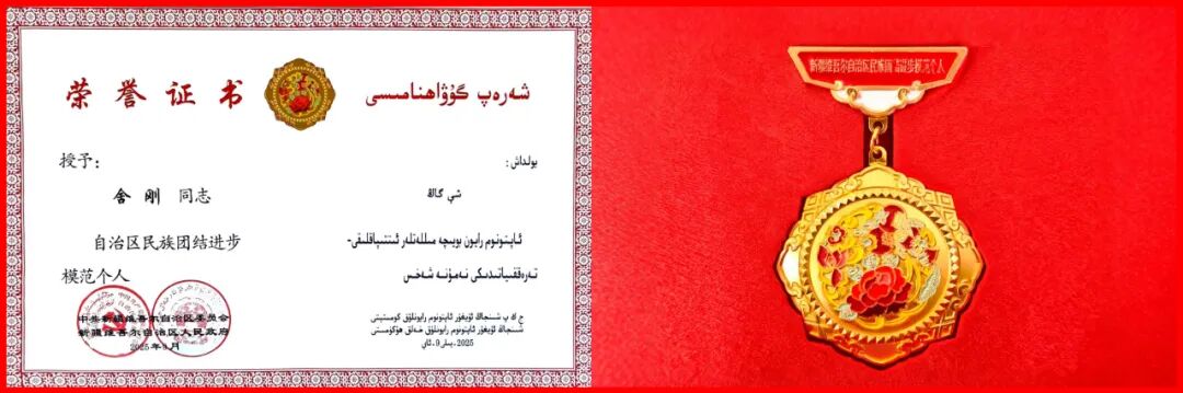 10月16日,自治区第九次民族团结进步表彰大会在新疆人民会堂隆重召开,大会对全疆(含兵团)各条战线上涌现出的100个模范集体和197名模范个人进行了表彰。九圣禾控股集团有限公司党委副书记、副董事长舍刚同志被授予 “自治区民族团结进步模范个人” 荣誉称号。